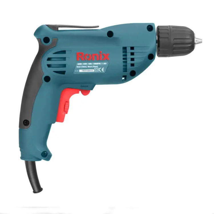 دریل برقی 2110 رونیکس، از موتور قدرتمند 400 وات با سرعت گردش بالغ بر 3000 دور بر دقیقه برخوردار است. این محصول در کاربردهایی نظیر سوراخکاری و بستن پیچ در سطوح چوبی و فلزی مورد استفاده قرار میگیرد. سه نظام مستحکم و 10 میلیمتری این دریل، دو تکه و اتوماتیک بوده و برای تعویض مته نیاز به آچار مخصوص ندارد. همین مزیت، بر روی سرعت کار با این ابزار و بازدهی مورد نظر، تاثیر مثبتی میگذارد.